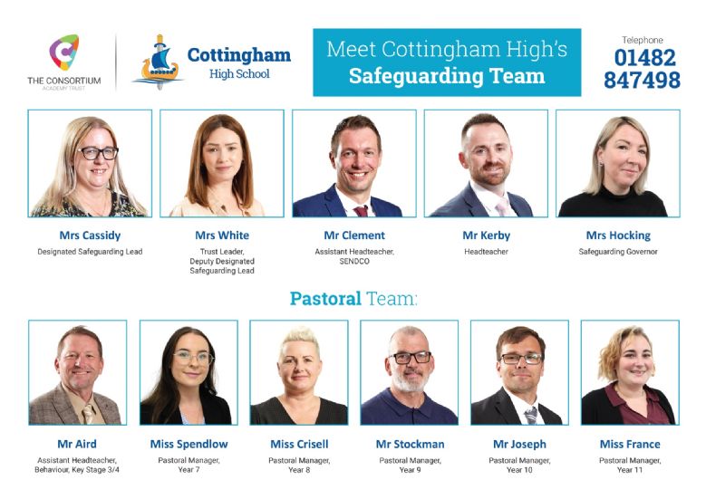 If your concern is of a child protection or safeguarding nature, please contact reception and ask to speak to our Designated Safeguarding Lead, in the first instance or by email: claire.cassidy@cottinghamhigh.net