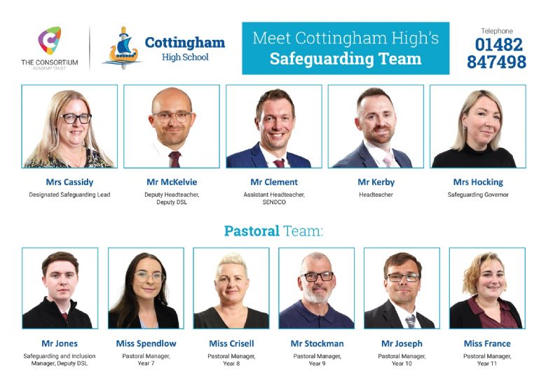 If your concern is of a child protection or safeguarding nature, please contact reception and ask to speak to our Designated Safeguarding Lead, in the first instance or by email: claire.cassidy@cottinghamhigh.net